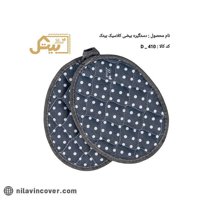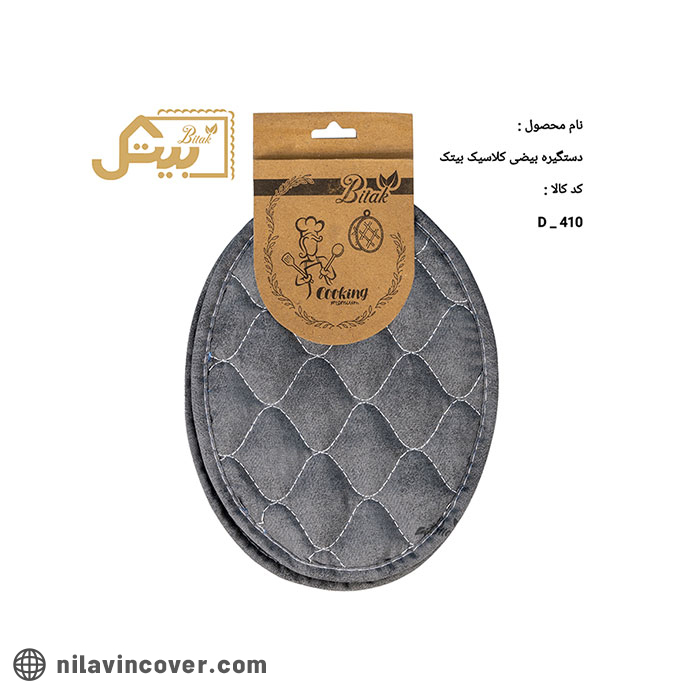 دستگیره بیضی کلاسیک بیتک از پارچه‌ای با درصد بالای نخ، مقدار کم پلی‌استر و الیاف ساخته شده‌اند تا بیشترین مقاومت در برابر حرارت را فراهم کنند. این ساختار هوشمندانه مانع انتقال سریع گرما شده و ایمنی کامل دستان شما را هنگام جابه‌جایی ظروف داغ تضمین می‌کند. دوام بالا، کیفیت ساخت عالی و طراحی کاربردی باعث شده این دستگیره‌ها انتخابی مطمئن و ضروری برای هر آشپزخانه باشند؛ ترکیبی از ایمنی، راحتی و کارایی در کنار هم.