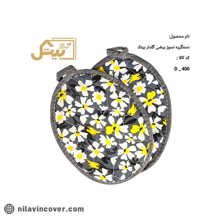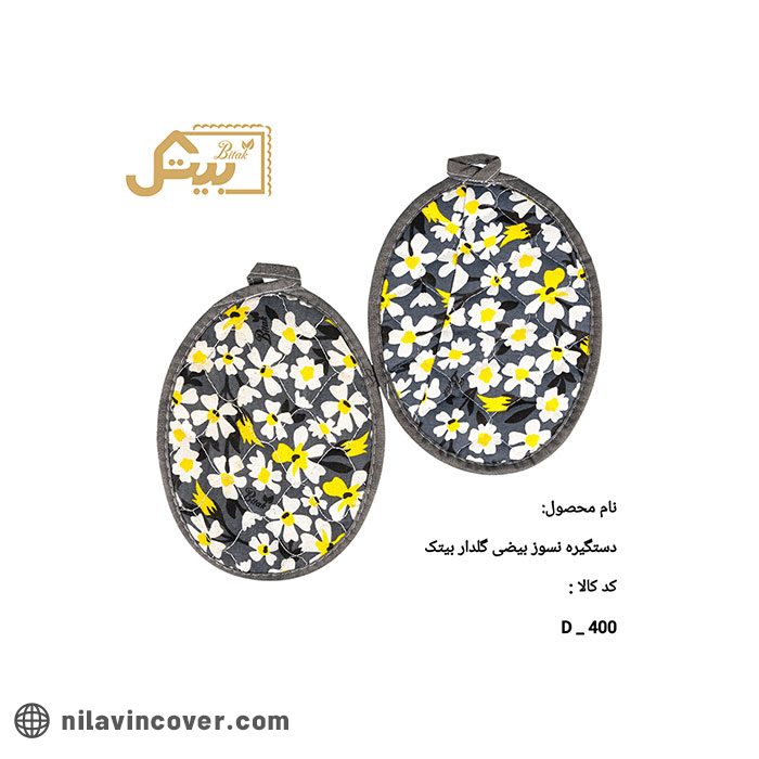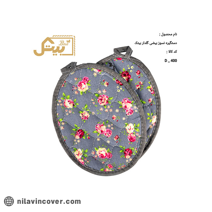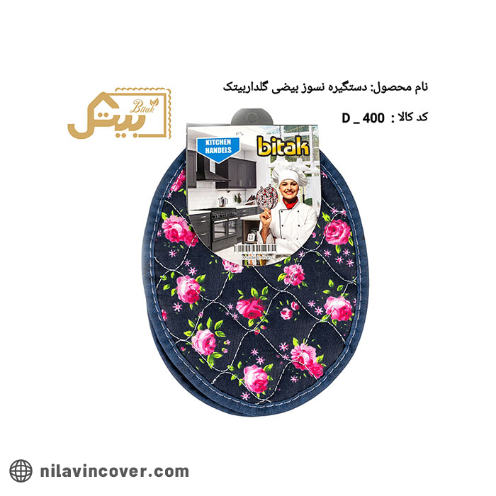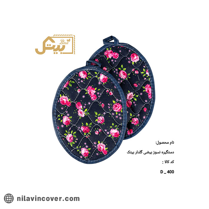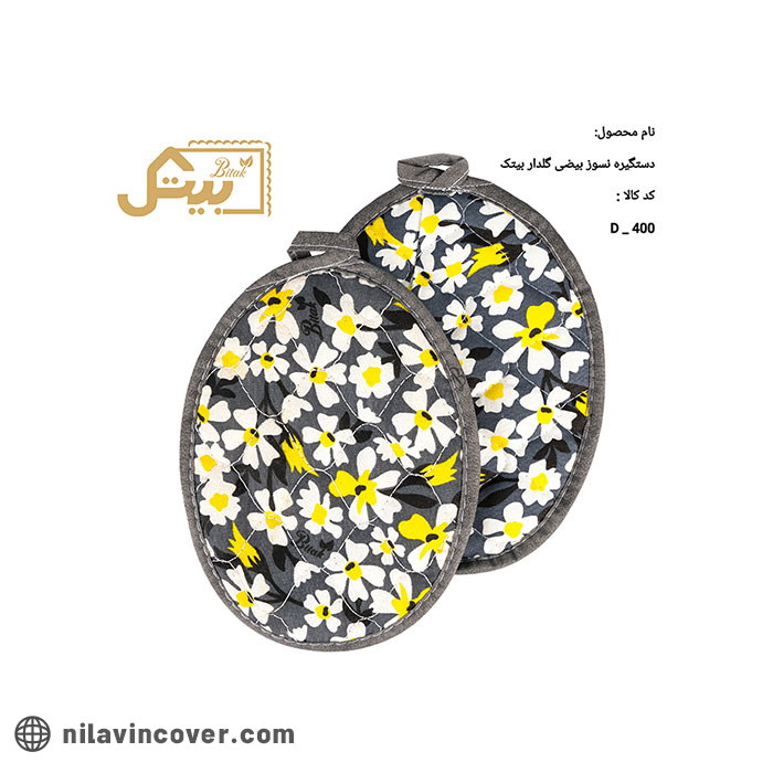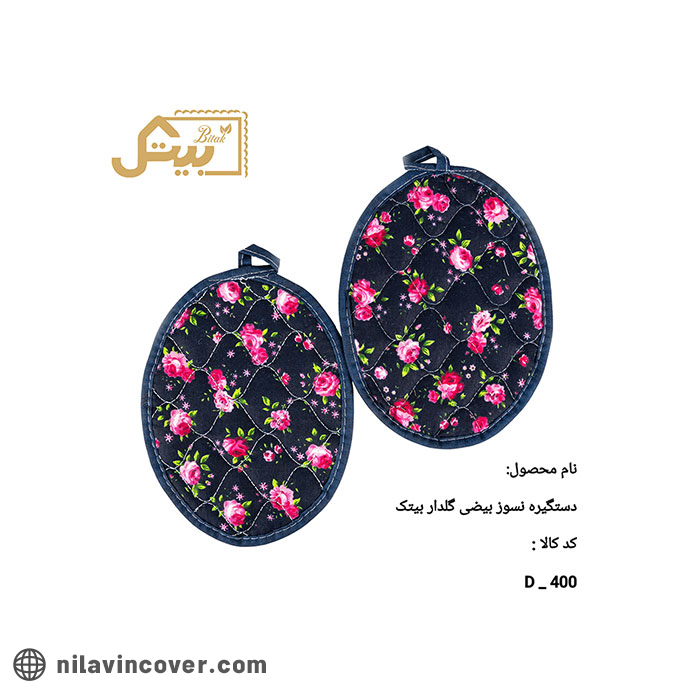 دستگیره نسوز بیضی گلدار، انتخابی هوشمندانه برای هر آشپزخانه است. این محصول از پارچه‌ای ضخیم با درصد بالای نخ و مقدار کم پلی‌استر تولید شده که باعث می‌شود حرارت به سرعت به دست منتقل نشود، ایمنی شما را هنگام جابجایی ظروف داغ تضمین می‌کند.